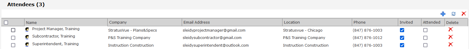 Meeting Attendees are the list of Project Members that will were requested for attendance to the meeting. Being an Attendee allows the user to receive the Meeting Attendee Email Notification as well as be a collaborator to the Meeting and Meeting Minutes.