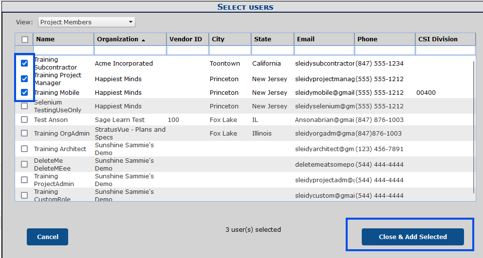 Important Note: Selecting Users from outside of the Project Member's list will add the selected user to the Project Members section of the project with their User Role Permissions4. The Project Members will be included to the attendee's grid.