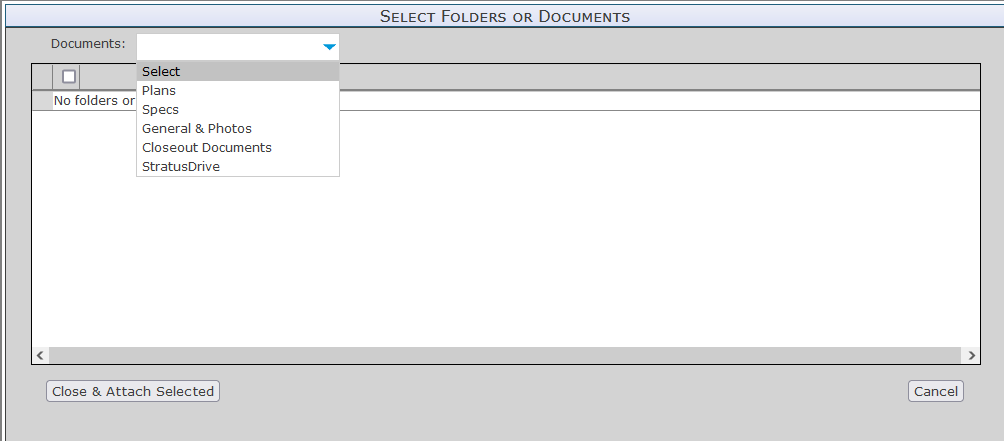 6. At the bottom select Close & Attach Selected to add these files to the item. The document selection tool will close and the selection(s) will appear in the appropriate reference section grid