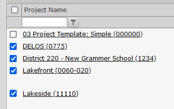 3. Select all of the projects that the project member is being added by selecting the checkbox to the left