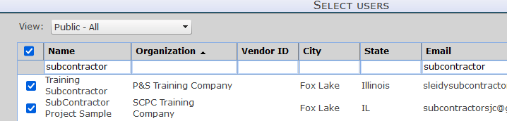 5. In the System Tool: The User Selection Tool, search for the Project Member(s) being added and select their checkboxes