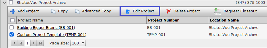 2. Select the checkbox to the left of the project and use the Edit Project button within the Project Toolbar at the top