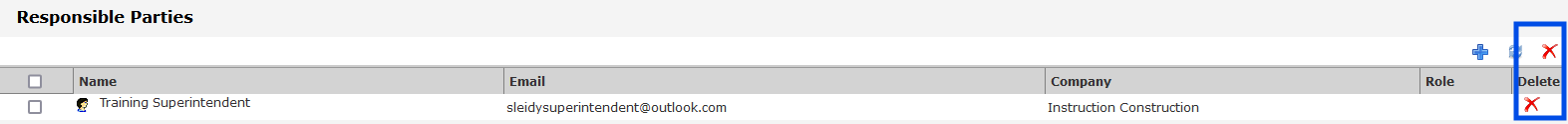 Important Note: Selecting Users from outside of the Project Member's list will add the selected user to the Project Members section of the project with their User Role permissions.4. Use the delete options to remove Responsible Parties from the Meeting Minute