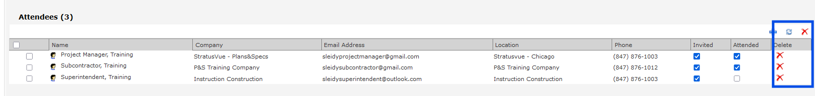 Important Note: Selecting Users from outside of the Project Member's list will add the selected user to the Project Members section of the project with their User Role permissions.4. Use the delete options to remove Invitees from the agenda