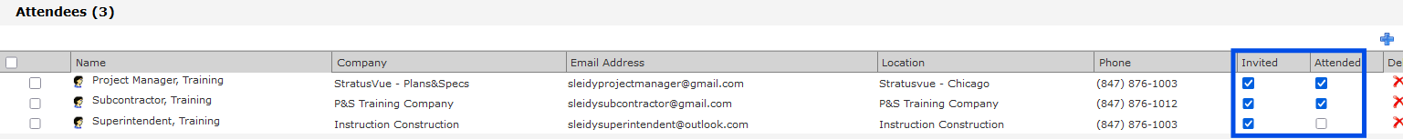Within the Attendee's grid, users have the options to capture if the Attendee has been and invited and if they attended the meeting. Invitees that are carried forward when Converting a Meeting Agenda to a Meeting that have been sent the Meeting Agenda Email Notification will be brought into the Attendee's grid with the Invited status checked. If they were not Sent the Meeting Agenda Notification (their Invitee Status is Invite Not Sent), they will NOT have their checkbox selected, but it can be manually assigned by selecting the checkbox in the Attendees grid.